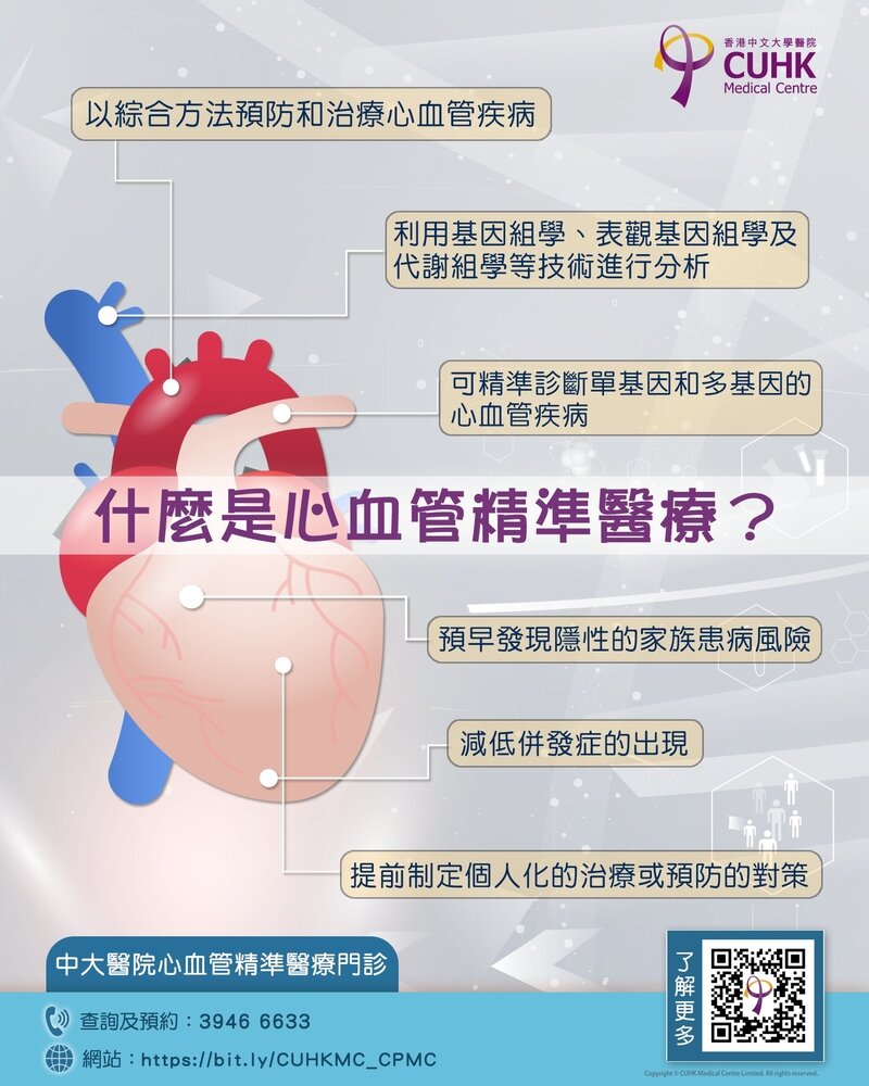 🫀心血管疾病是全球頭號的致命死因,而心血管精準醫療是以綜合方法預防和治療心血管疾病,透過整合個人基因背景、生活方式和非基因的外在因素,並利用基因組學、表觀基因組學及代謝組學等技術進行分析,有效精準診斷單基因和多基因的心血管疾病,藉此預早發現隱性的家族患病風險。
