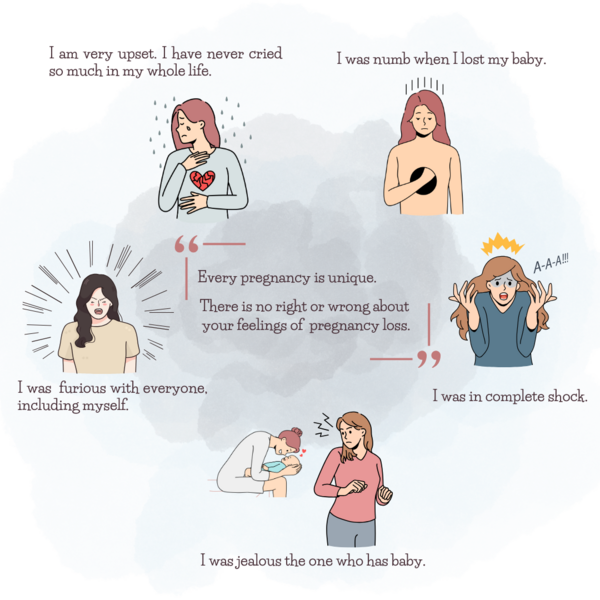Every pregnancy is unique; there is no right or wrong for couples’ feelings after a miscarriage. How couples feel about the miscarriage and how long the feelings last may depend on various factors, such as the meaning of their pregnancy, the physical suffering following a miscarriage, and how the people around react to their miscarriage, etc. They may experience these emotions: