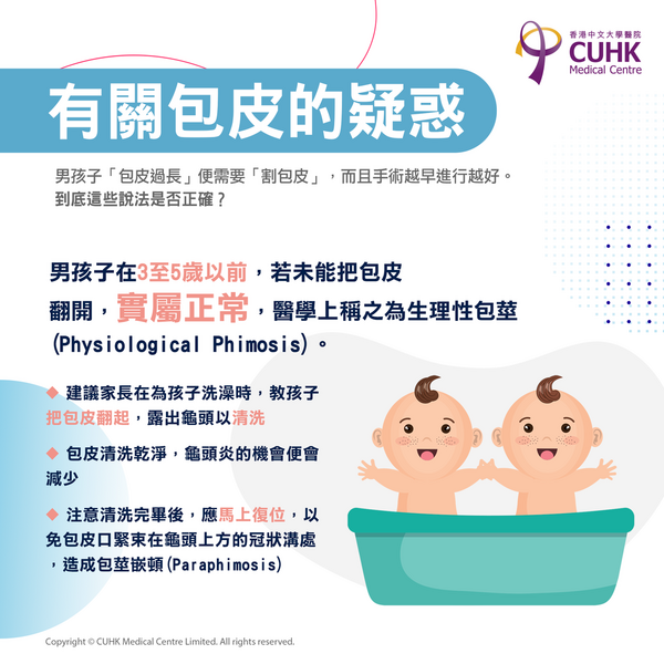 包皮是覆蓋在男性生殖器前端的外皮。坊間普遍認為,假若男孩子「包皮過長」便需要「割包皮」,而且手術越早進行越好。在美國,很多人更推崇在初生時期為寶寶進行「割包皮」手術。到底這些說法是否正確?