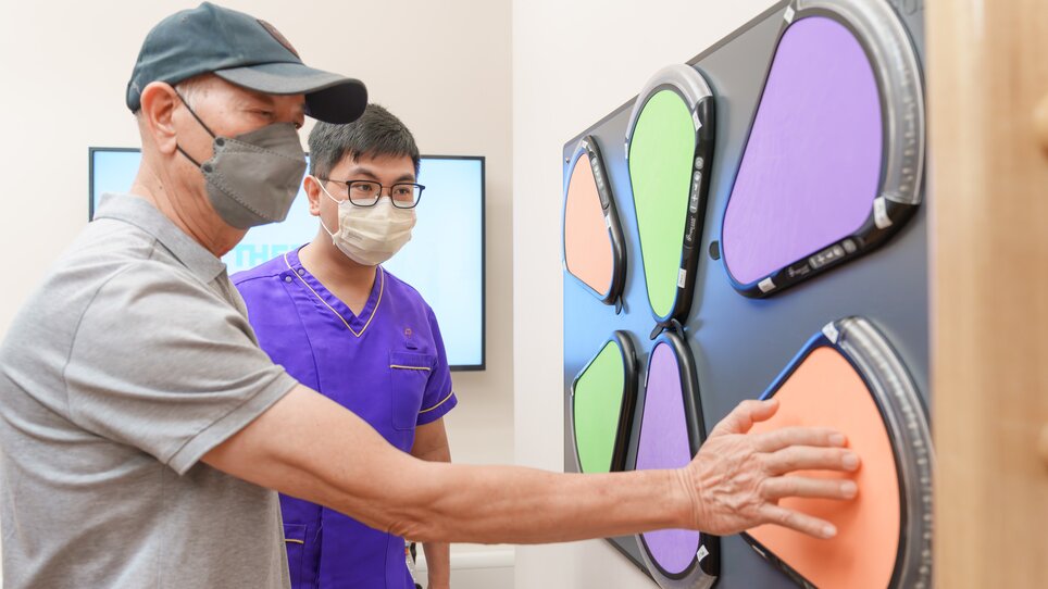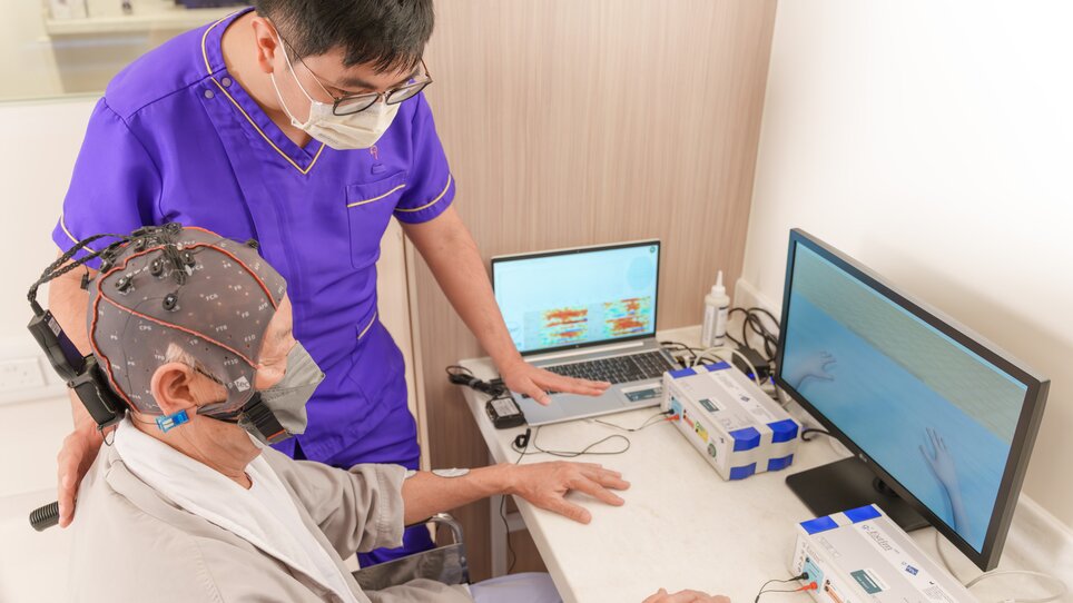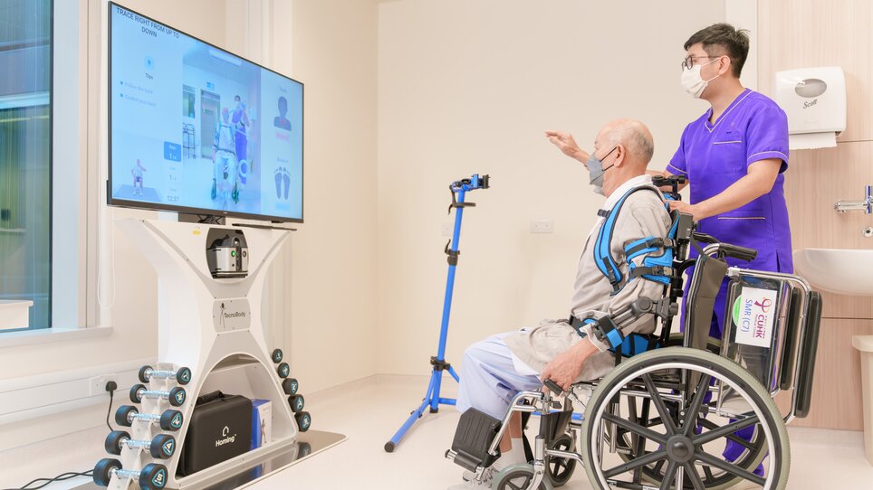 检测认知障碍症方面,临床神经科学中心引入先进的科技,特别是利用灵敏度高的「单分子阵列技术」数码仪器,从血液中侦测出特定生物标记,找出早期出现认知障碍症的人士。另外,中心亦透过AccuBrain(AI脑影像分析)的辅助,利用人工智能分析病人脑部的磁力共振影像(MRI),尽早确诊认知障碍症患者。康复治疗方面,中心配备多项先进康复仪器设备,包括脑磁激治疗(TMS)、机器人(Robotics)、外骨骼(Exoskeleton)和虚拟实境(VR)的应用,协助患者进行康复运动及训练。