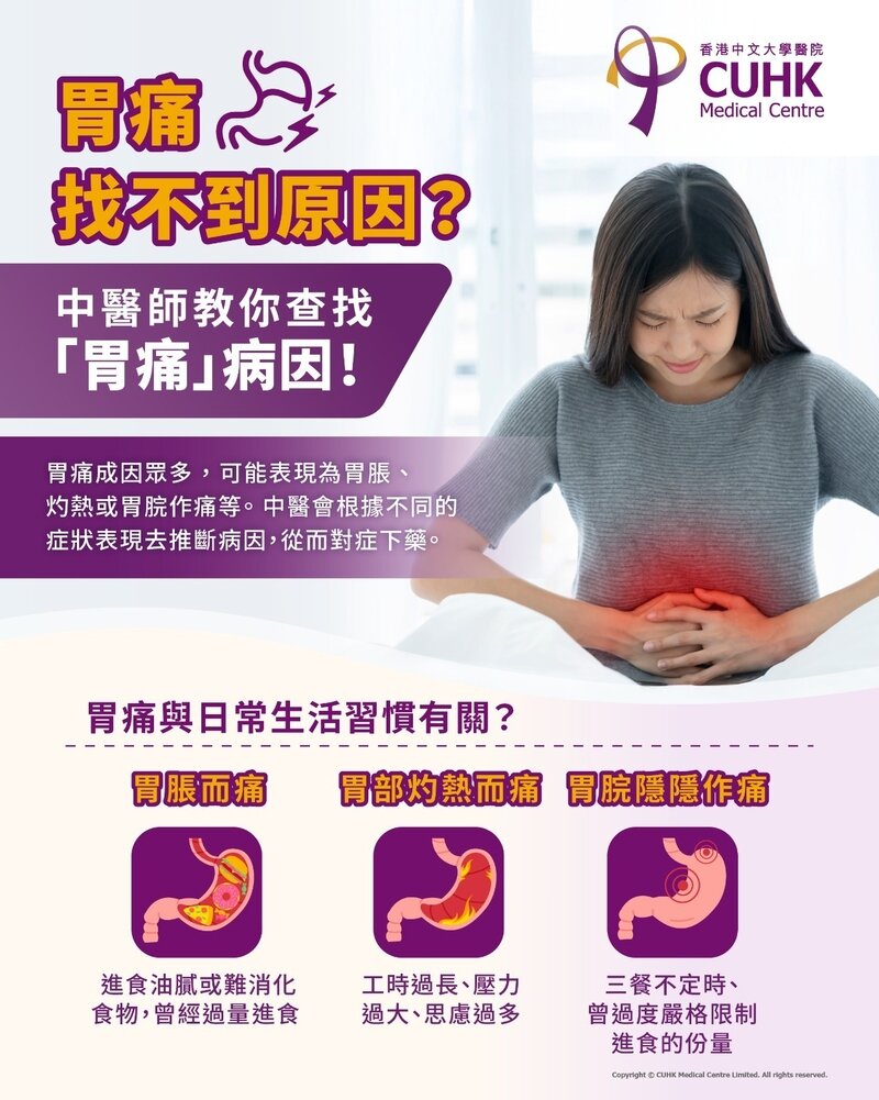 胃痛、胃抽筋的感覺,相信大多數人都曾經歷過,一般情況下,這些症狀可以通過進食或休息來緩解,但若長期反覆發作,便需要多加留意了⚠️。胃痛的成因有很多,中醫師往往從不同的症狀表現去推斷病因,從而對症下藥。如果你時常受胃痛困擾,不妨參考下面列表去查找病因👇🏻。