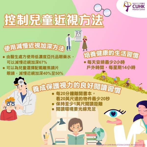 - 由醫生處方使用低濃度亞托品眼藥水,可以減慢近視加深67%