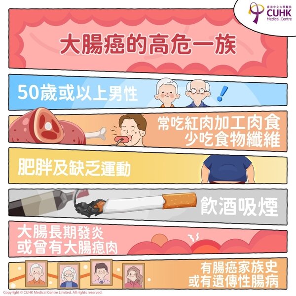 ·有腸癌家族史,尤其是直系親屬,如父母、兄弟姊妹或子女