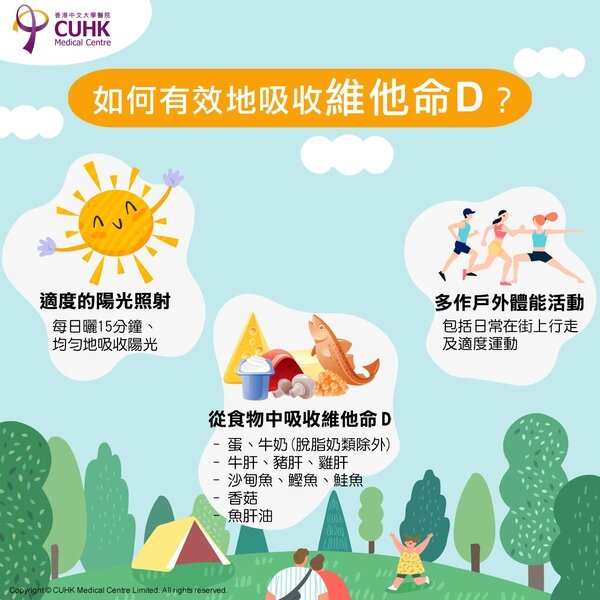 - 可幫助腸道吸收鈣質,維持血液中鈣、磷的正常水平,令骨骼強健