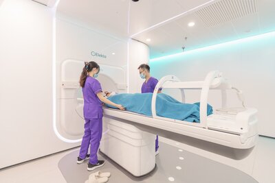 放射治療利用電離輻射來破壞前列腺癌細胞。對於患有局限性前列腺癌的男士,可單獨使用放射治療或配合荷爾蒙治療一併使用。MR-Linac是一套核磁影像導向放射治療系統,糅合了高場核磁共振成像和精確放射治療於一身。隨著腫瘤定位更為準確,腫瘤科醫生也可更有信心地在前列腺器官提高放射劑量。我們也可以考慮在放射治療前進行經會陰注射水凝膠,進一步減低放射治療對於附近直腸的影響。
