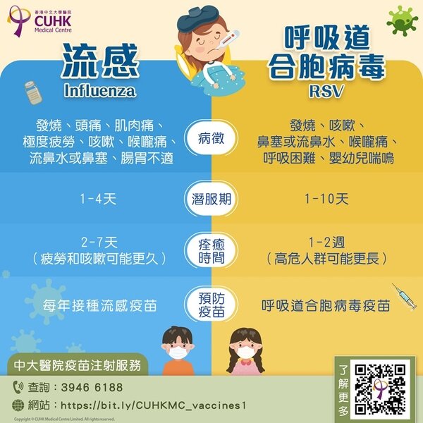 由於呼吸道合胞病毒(RSV)的病徵與流感相似,令人容易與流感混淆,及早了解它們的症狀、潛服期和預防措施有助減少感染和相關併發症的風險。
