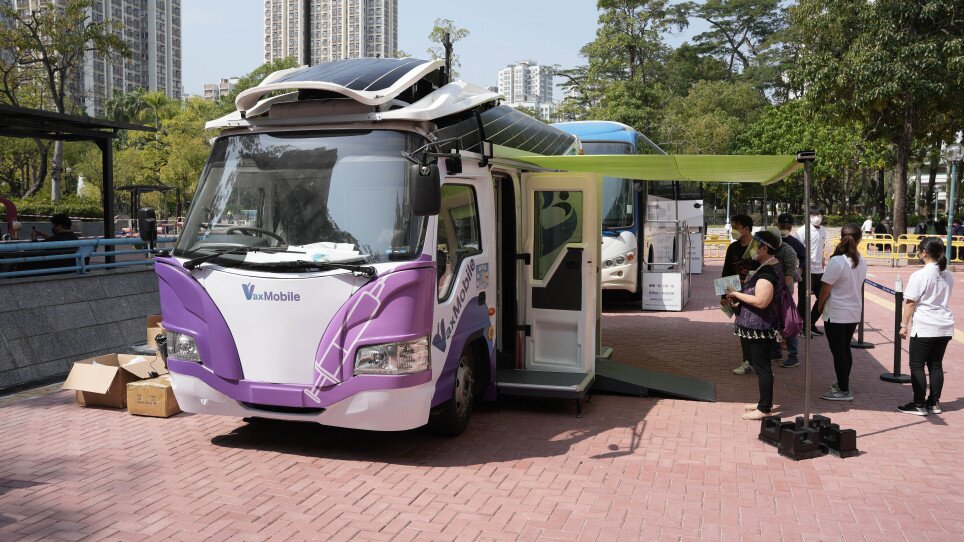 但就在技術將要投入市場之際,Omicron在本港大爆發,確診數字以幾何級數上升,愛多團隊決定將電動小巴改裝為帶有負氣壓功能的「健康車3.0」,用於新冠疫苗的接種。