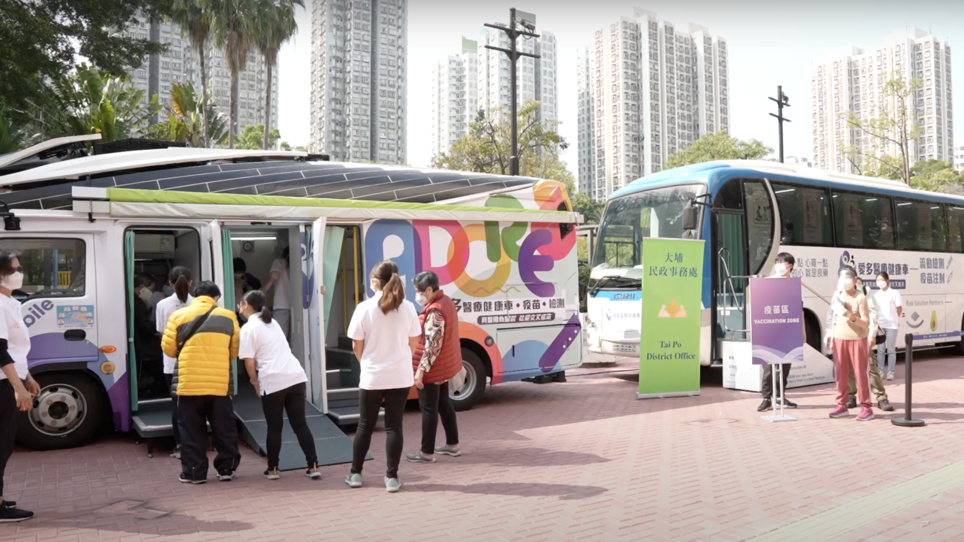 「愛多醫療健康車3.0」在3月4日已正式啟用,首階段重點面向中小學校、幼稚園、安老院舍等提供外展服務,為學生、長者等急需保護的群體打針。當天上午來到第一站大埔大元邨,為超過380位市民進行復必泰疫苗接種,其中不少是長者。負責本港疫苗接種計劃的公務員事務局局長聶德權亦來到現場視察。